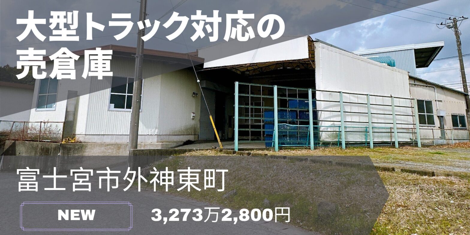 今回おすすめする「富士宮市外神東町 売倉庫」の基本的な情報をリストにまとめました。まずは広さや価格をチェックしてみてください。